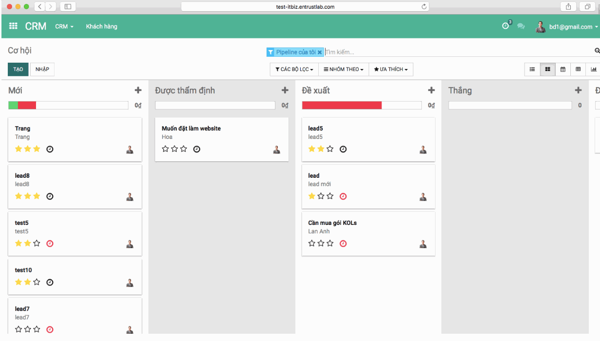 Status: thể hiện trạng thái của công việc (Báo giá/Báo giá đã gửi, Hủy.....)