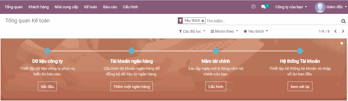 Nhập dữ liệu ban đầu cho tính năng kế toán của ERPOnline
