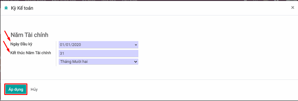 Ngày đầu kỳ: Ngày mà kế toán được quản lý bởi Odoo, nó là ngày của bút toán đầu kỳ được tạo (sẽ được giới thiệu tiếp theo dưới đây);