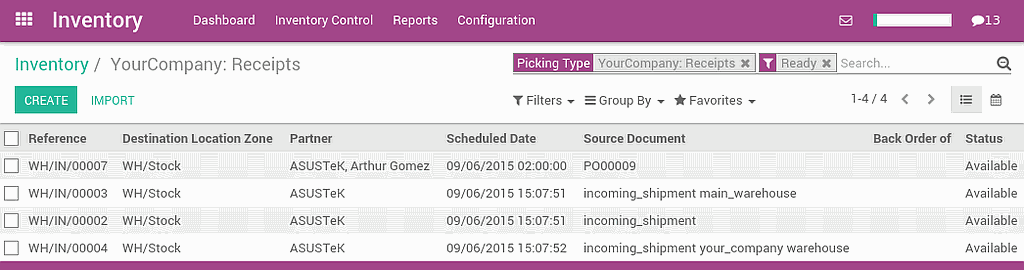 If you want to get product forecasts and receptions under control, the first thing to do is to deploy the Odoo purchase process. Knowing what have been purchased is the basis of forecasting and controlling receptions.