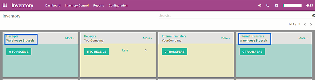 If you own different warehouses you might want to transfer goods from one warehouse to the other. This is very easy thanks to the inventory application in Odoo.