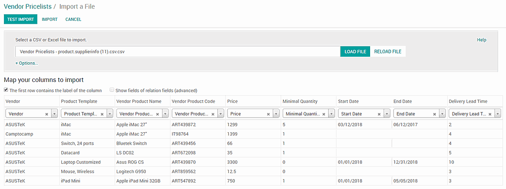 It is key for companies to be able to import vendors pricelists to stay up to date on products pricing.