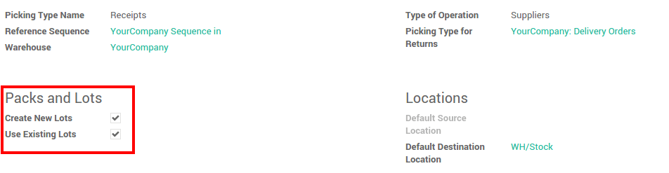 You also need to set up how you will manage lots for each operations. In the Inventory application, go to :menuselection:`Configuration --> Operation Types`.