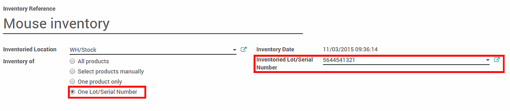 You can also just do the inventory of a lot. In this case, you will have to fill in the Lot number. You can also create a new lot from here. Just type in the number, a window will pop out to link the number to a product.