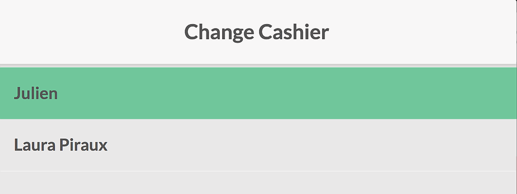 The easiest way to switch cashiers is without a code. Simply press on the name of the current cashier in your PoS interface.