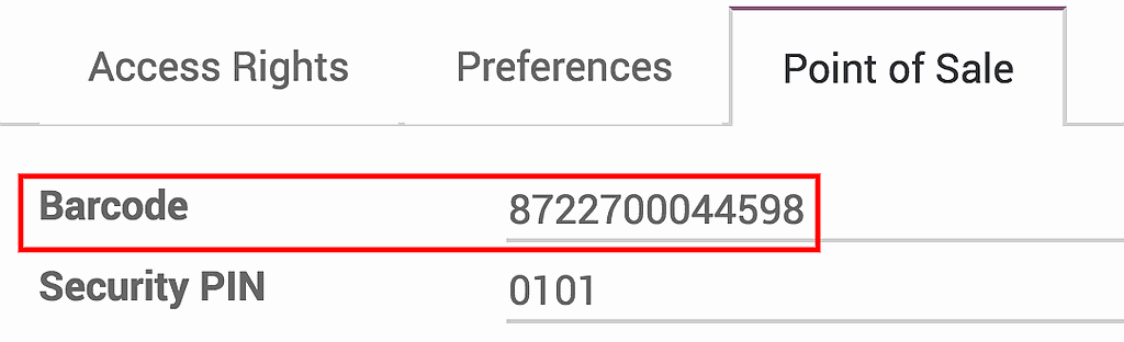 You can also set a pin code on each user. To do so, go to :menuselection:`Settings --> Manage Access rights` and select the user.