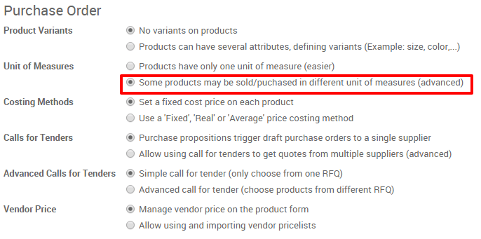 In day-to-day business, it may happen that your supplier uses a different unit of measure than you do in sales. This can cause confusion between sales and purchase representative and even make you lose a lot of time converting measures. Luckily in Odoo, you can handle different units of measures between sales and purchase very easily.
