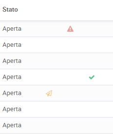I vari stadi di spedizione e recezione della fattura sono visibili anche dall’elenco delle Fatture nella forma di icone, accanto alla colonna “Stato” dall’applicazione contabilità.