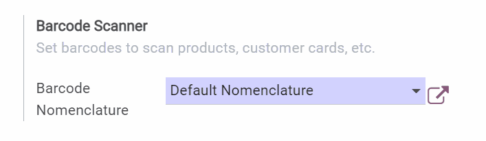 To use a barcode scanner, go to `Point of Sale --> Configuration --> Point of sale` and select your PoS interface.
