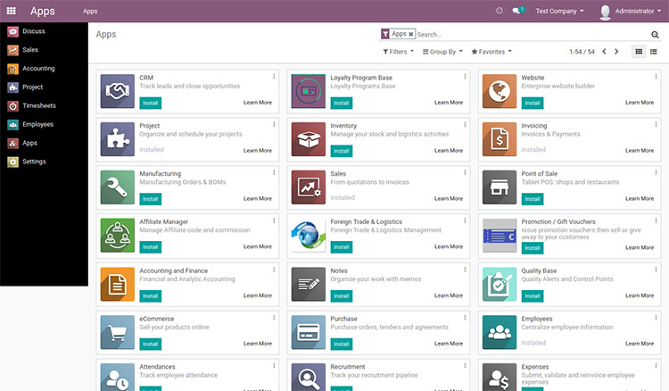 OpenERP's unique modular approach allows customers to start with one application and add other modules later. Customers keep the benefits of an integrated software but avoid a "big bang" project.